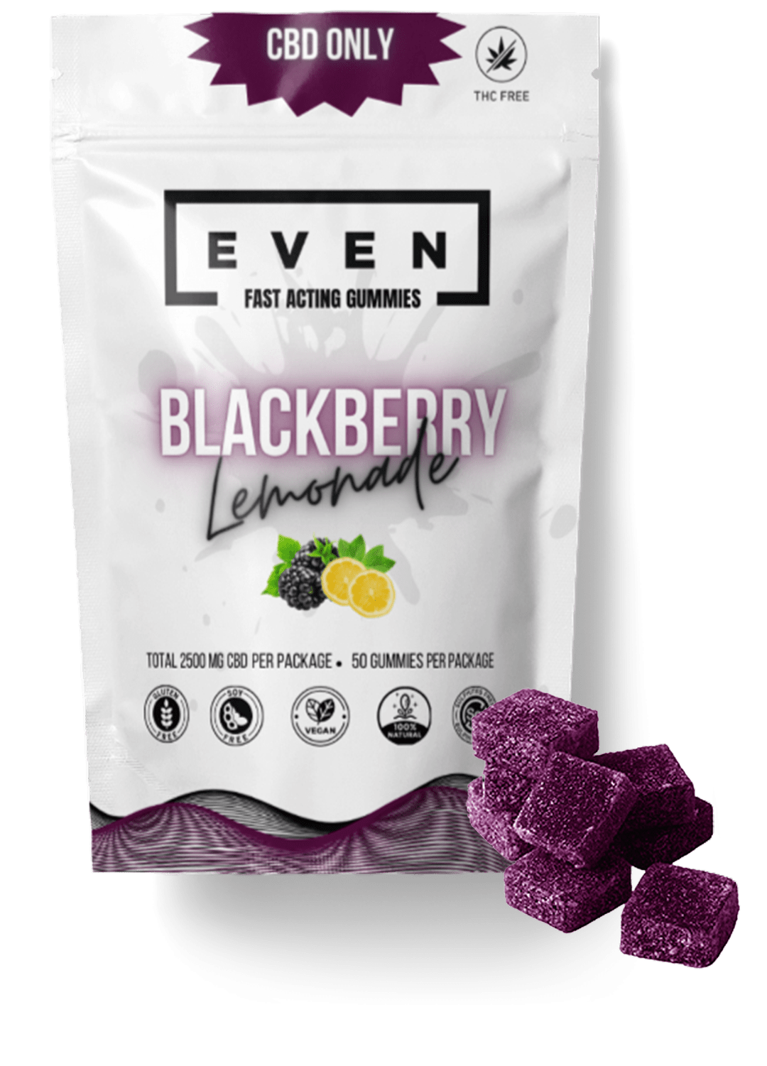 Rapid onset, high-quality gummies using ingredients manufactured in British Columbia. Hints of blackberry juicy fruits and lemonade resulting in blackberry lemonade flavour. Fifty-pack (50) of rapid onset gummies with 2500mg of CBD (50mg/piece). All-natural ingredients, vegan, gluten-free, sulphite-free, and cannabis terpene enhanced.